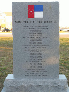 Even though this is brand new, the wording is old-fashioned, starting out "North Carolina remembers and honors her gallant sons who fought in defense of home and country in the Army of the Valley District commanded by Lt. Gen. Jubal A. Early at the Battle of Third Winchester Sept. 19 1864."
